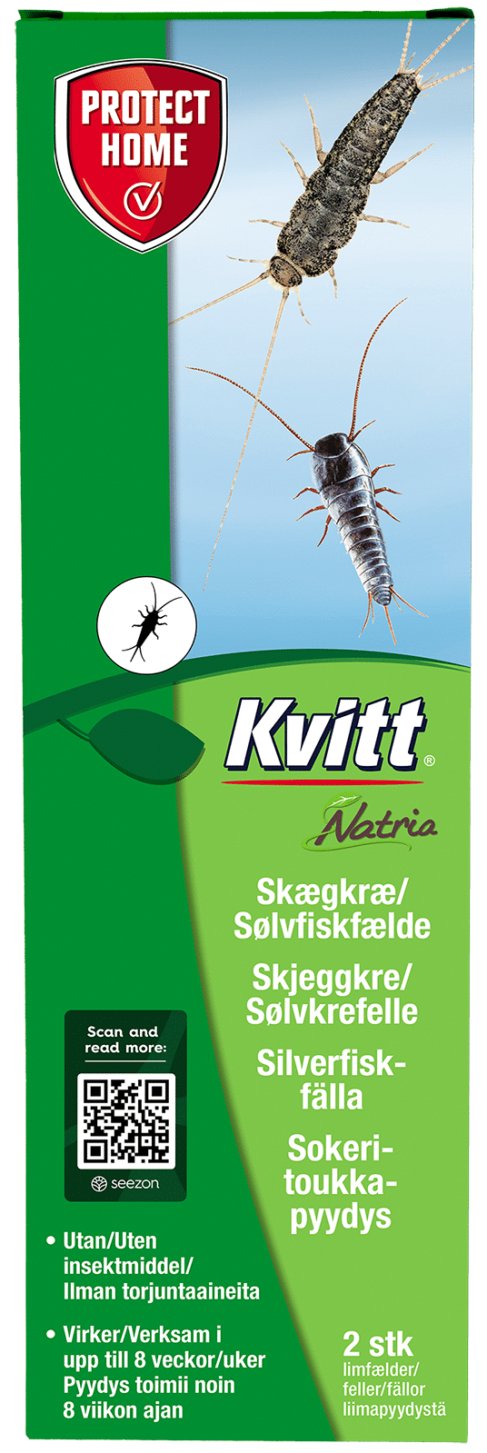 Natria sokeritoukkapyydyksellä pidät sokeritoukat kurissa. Sokeritoukat syövät erilaisia elintarvikkeita ja materiaaleja, jotka sisältävät tärkkelystä, sokeria, selluloosaa tai proteiineja. Ne viihtyvät pimeissä ja kosteissa tiloissa kuten kylpyhuoneissa. Pyydystä voidaan käyttää myös paperitoukalle (Ctenolepisma longicaudata), joka on alkanut levittäytyä Suomeen.